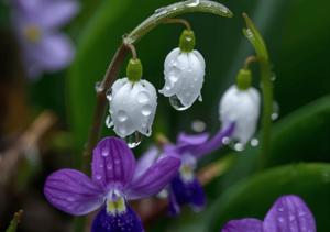 トップ、ミドル、ラストに分かれてはいますが、実はそこまで香りの大きな変化はなく、繊細にゆらぐように展開をしていきます。少し時間が経つと、ウォーターアコードに鼻が慣れていくからか、スズランとスミレによるフローラルノートが感じられていきます。華やかで女性的というよりは、清楚で儚く水に濡れた草花のようで、控えめでミステリアスといった表現が近いです。スズランやスミレはパウダリーフローラルの代表格ではありますが、ウォーターアコードのためか粉っぽさはあまりなく、瑞々しく清楚に咲いています。