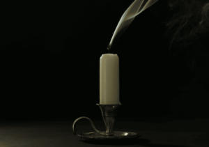 先に述べたベチバーはアーシー(土っぽい)で人によっては焦げ臭さや埃被った強烈な匂いに感じる方もいるベースノート(ラスト)で用いられる香りですが、これが作品全体の暗さや落ち着きに貢献しており、次にウッディー調の香りで松明にも用いられて、蠟燭を消した時の焦げ臭さ香る植物アミリス。闇の儀式に使われる蠟燭の灯が消える瞬間が想起されるほか、先のベチバーと共に用いることで深みを与え、そこにベチバーだけでは表現できないアミリスならではの冷たさが包み込みます。