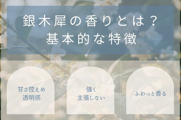 銀木犀の香りは、全体的に静かで上品な雰囲気が特徴です。