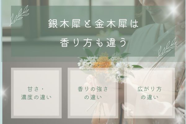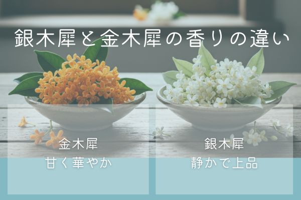 A. 金木犀は甘く華やか、銀木犀は静かで控えめと印象がはっきり異なります。