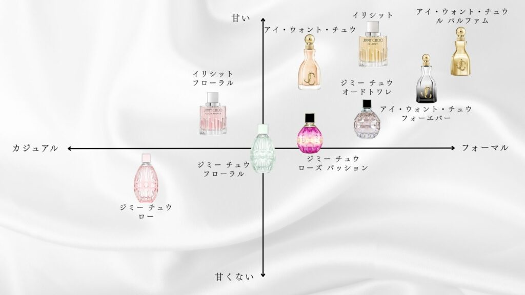 ジミー チュウは幅広い層に似合う香りが揃っています。