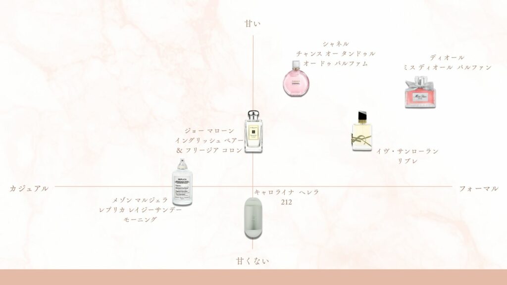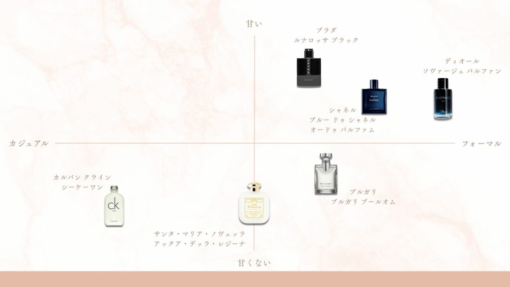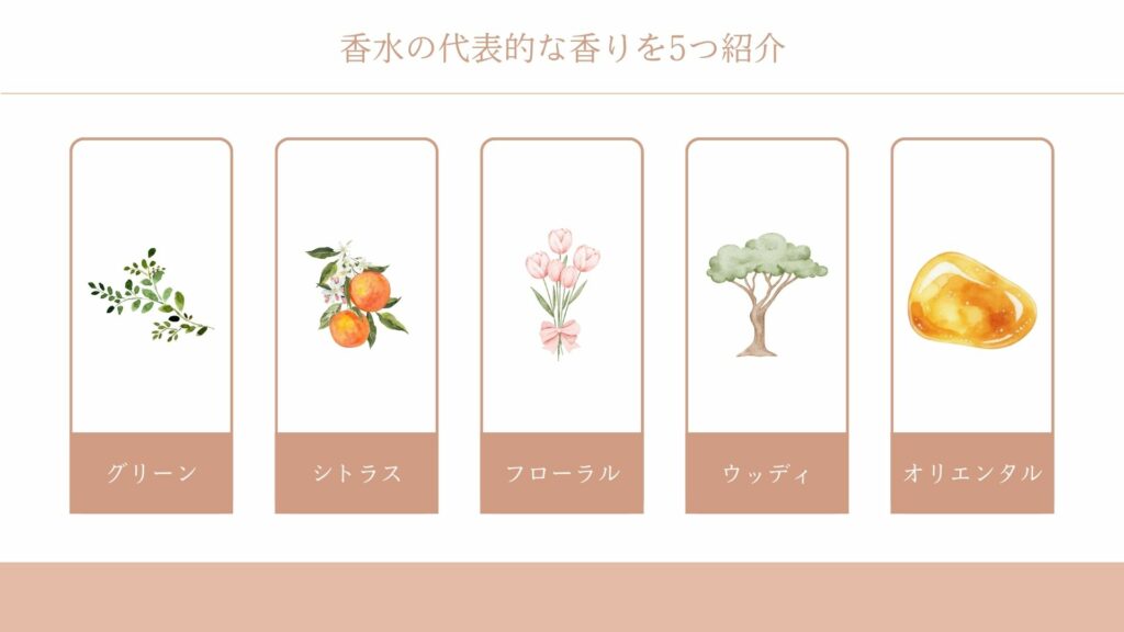 濃度だけでなく「香りの系統」を知ることで、自分が求めるイメージをより具体化できます。